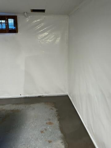 Our team installed a full perimeter WaterGuard drainage system along with the CleanSpace Vapor Barrier to permanently seal and protect the basement. The CleanSpace liner stops moisture from passing through the foundation walls, while the WaterGuard system collects and directs any water safely to the sump pump before it can reach the floor.