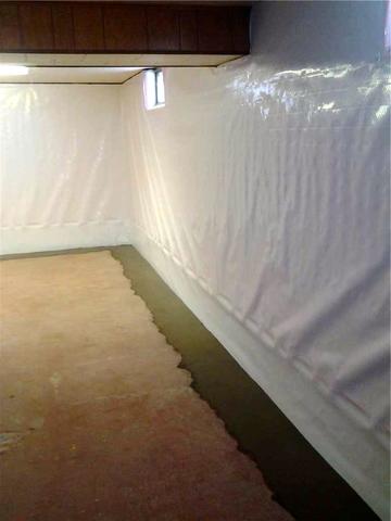 The Production Team fully waterproofed the basement using a Waterguard system (underground along the edge of the basement interior), as well as Cleanspace on the walls to keep all water outside the home.