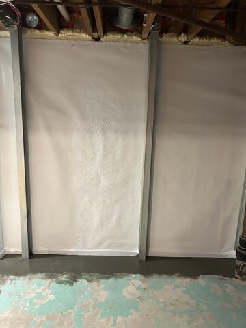 To permanently solve both the moisture and structural concerns, our team installed a complete Basement Systems waterproofing and stabilization solution.