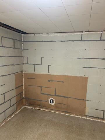 This homeowner in North Mankato, MN was dealing with a serious basement issue. Every time it rained heavily, water would leak into her basement through both the floor and the walls. Over time, the problem got worse. Large horizontal cracks had formed in the basement walls, and the walls were starting to bulge and bow inward due to hydrostatic pressure, which is a common issue in Minnesota when the soil around a home becomes overly saturated.