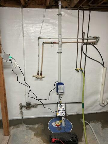 Our team designed and installed a complete waterproofing system tailored to his home. We started with WaterGuard, our proven interior drainage system, to capture water at the foundation and direct it safely away. We then installed CleanSpace along the basement walls to create a clean, dry barrier against moisture and humidity. To ensure reliable protection even during heavy storms or power outages, we finished the system with a SuperSump pump paired with an UltraSump battery backup.