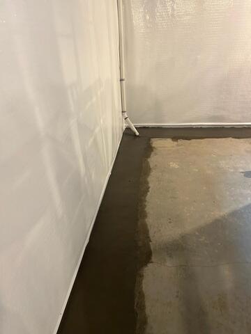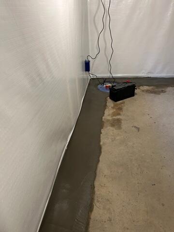 We installed WaterGuard, our interior perimeter drainage system, to capture water at the foundation footing and safely direct it away before it could enter the basement. To create a clean, dry barrier along the walls, we added CleanSpace, which helps block moisture and directs any wall seepage into the drainage system. Finally, we installed a SuperSump pump system with UltraSump battery backup, ensuring reliable protection even during heavy storms or power outages.